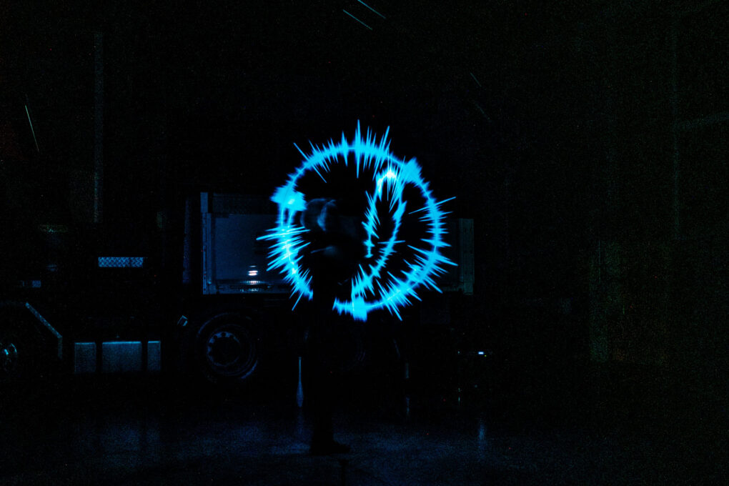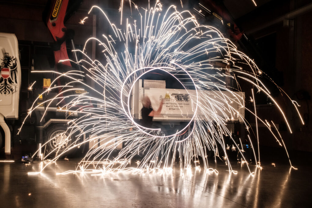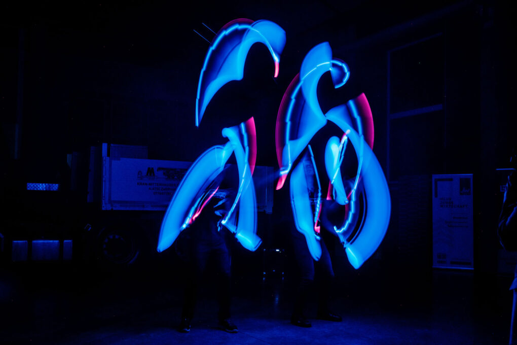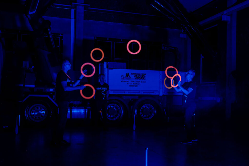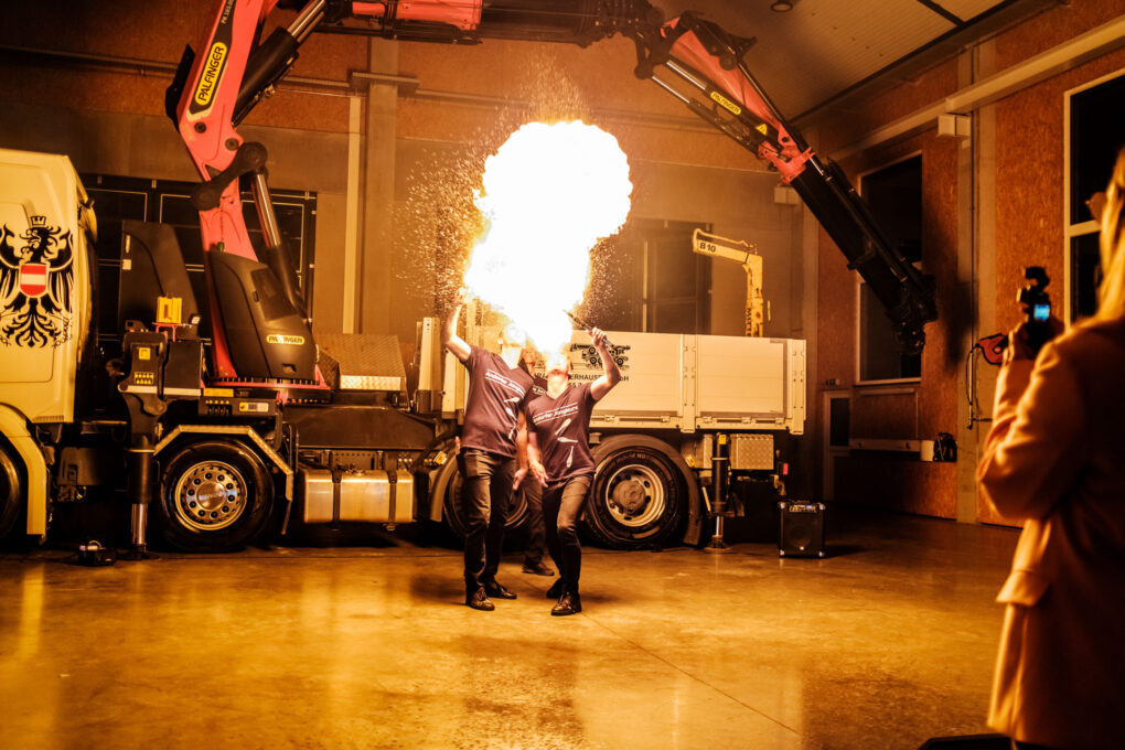 Wir performten für die Gäste unseren Showact “Trilumina” und zeigten auch unser neuestes Pyrotechnik-Requisit – die Pyropois.